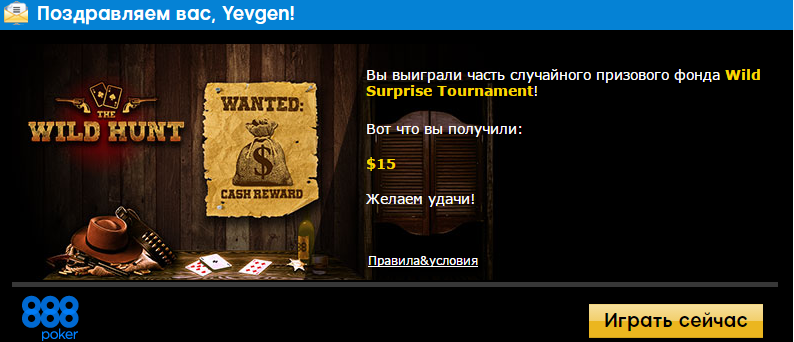 Сегодня зашёл в турнир через позднюю регистрацию, попал в 1000, получил 2$ сверх стандартной выплаты.
