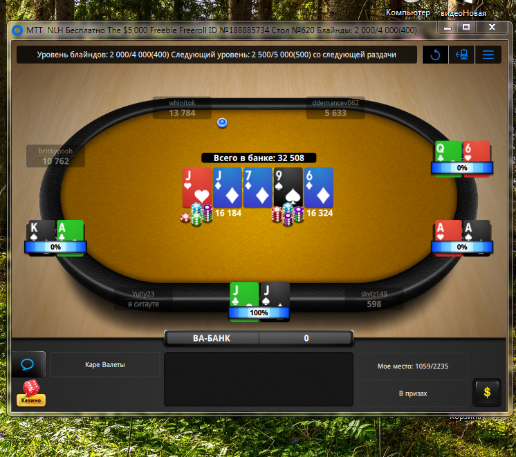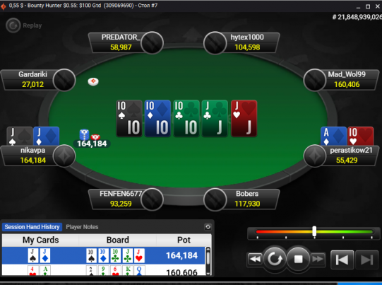 С игрой знаком с 2010-усиленно последний год.За все время на всех румах ловил 3 раза ФлешРойаль+раза 2 меня переезжали с ними.(