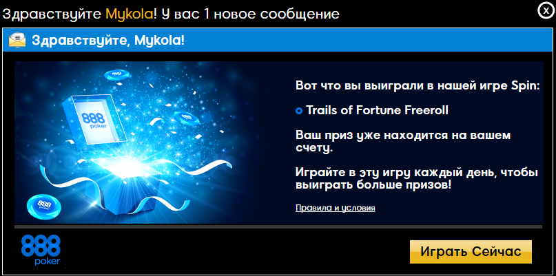 888 в своем репертуаре, в понедельник крутнул уже новое колесо, а только что получил почему-то билет по старой акции, который нельзя использовать