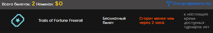 Зашёл поиграть в омаху хайло на лимите 0.01/0.02, выиграл несколько раздач, выхожу из-за стола - и появляется окно "Получите билет на фриролл". При этом даже дамы-валета на руках не было. Тут кто-то писал, что за бласт за 10 центов тоже билет дают, но я не пробовал. Получается, играй во что хочешь и получай билетики.